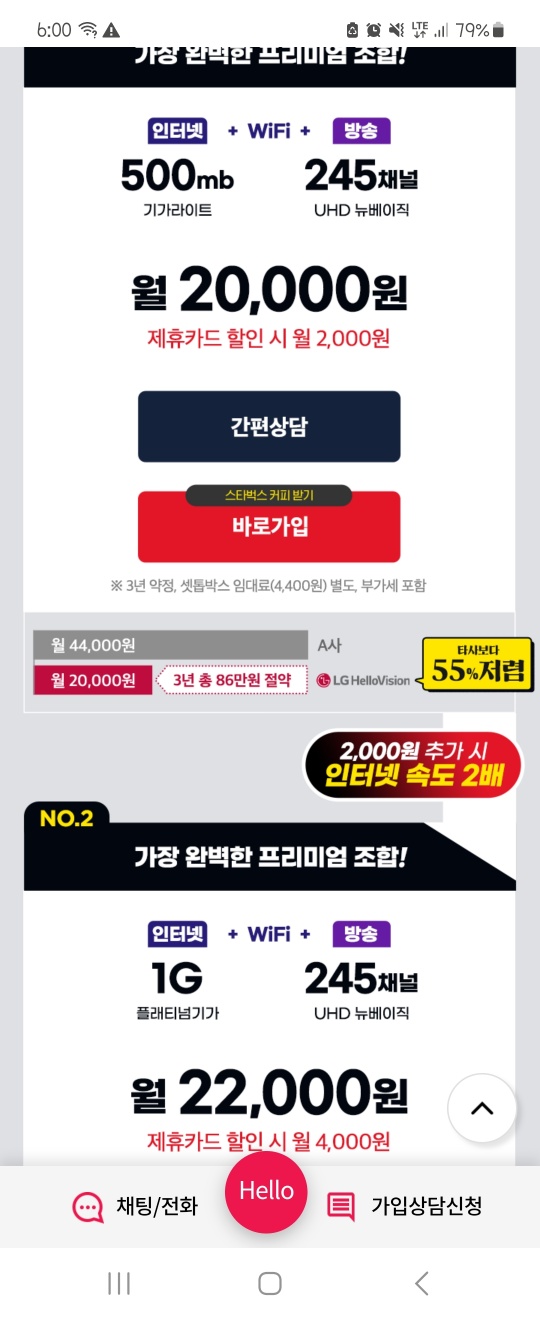 새로 가입할 통신사로 LG헬로비전을 염두에 두셨는데