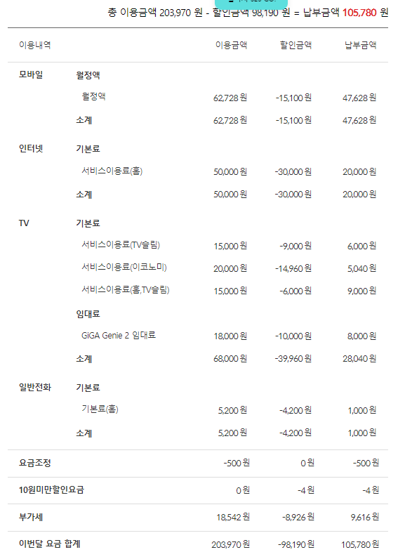 => 6개월 간 납부하는 요금 190,200원