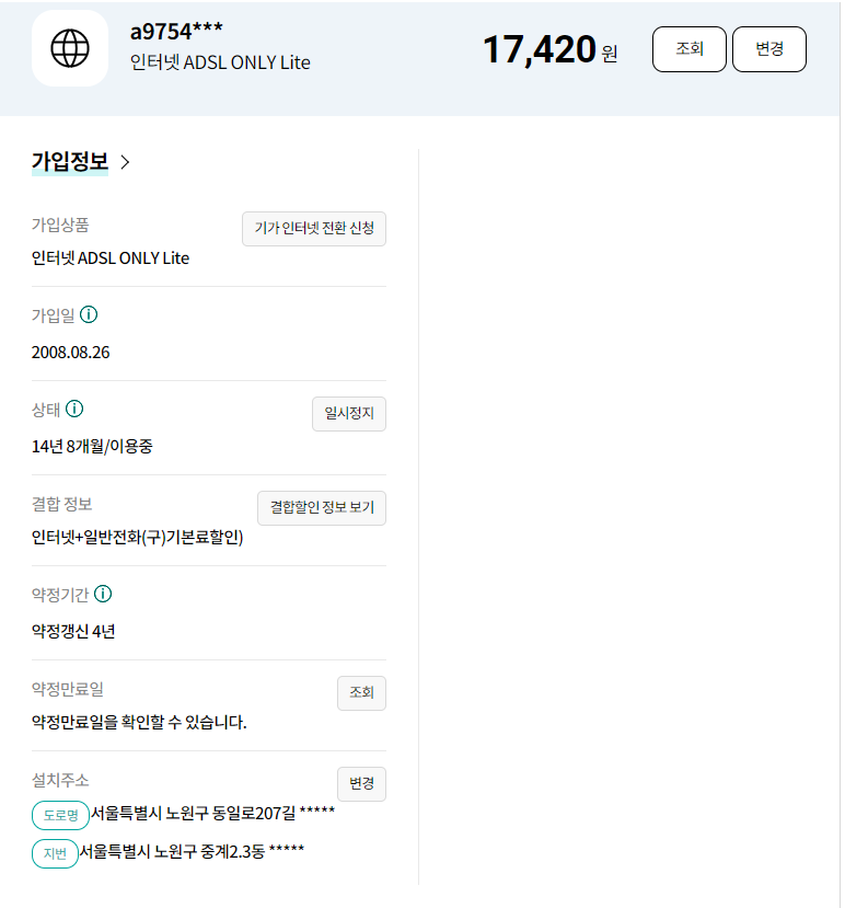 제가 궁금한 것은 이 정도 금액을 내면서 인터넷을 단독으로 이용하고 있으면 합리적인 가격으로