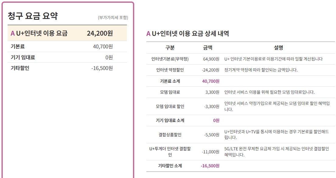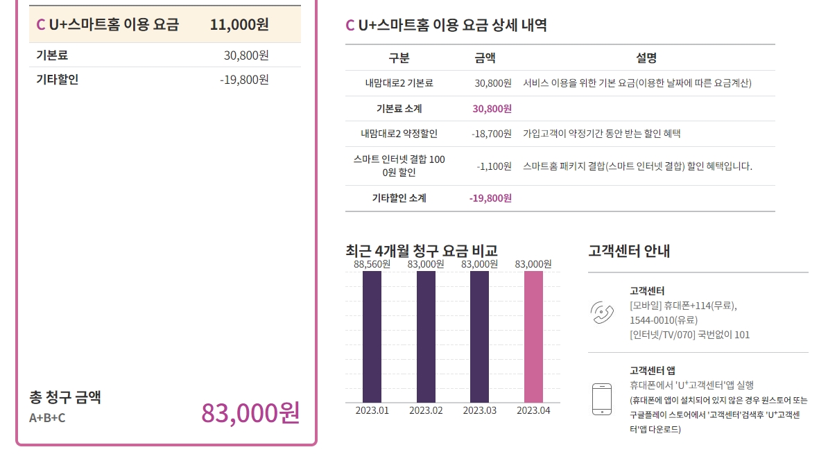 : 가게 LG 100메가 + 티비 = 약정만료 (우리집과 결합 중)