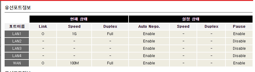 그래서 KT인터넷망을 들어가봤는데 역시나 100MB 로 인식이 되어있더라구요.