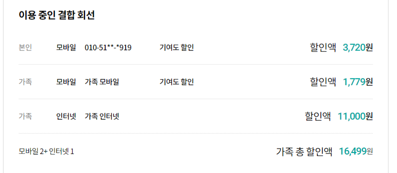 (패밀리? 유선+유선 결합할인에 대한 내용은 언급 없었습니다)