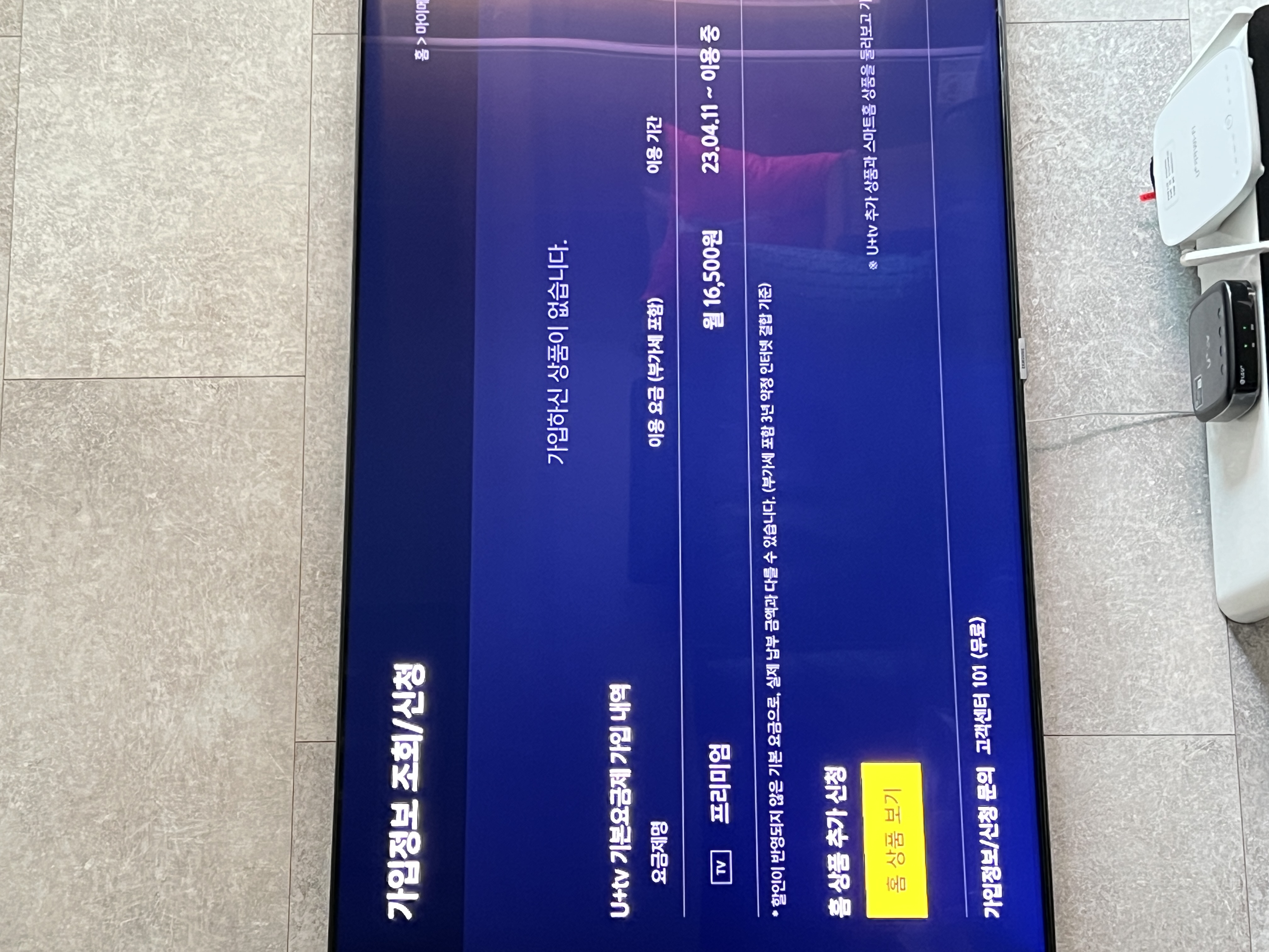 아하, TV요금제가 베이직이 아닌 프리미엄으로 되어 있는 게