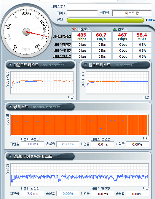 요즘 계속 인터넷 자체가 끊기는 일이 많이 생기길래 벤치비라는 웹사이트를 많이 사용하는 것같아 사용해봤는데 핑테스트에서 손실율 79.89%가 나왔는데 핑테스트에서의 손실율은 상관이 없는지 궁금합니다.