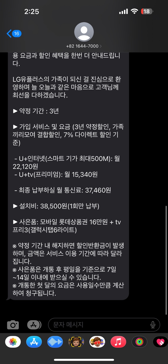사은품은 현금 23만원, 설치비 27,500원이 월요금과 같이 청구되지요.
