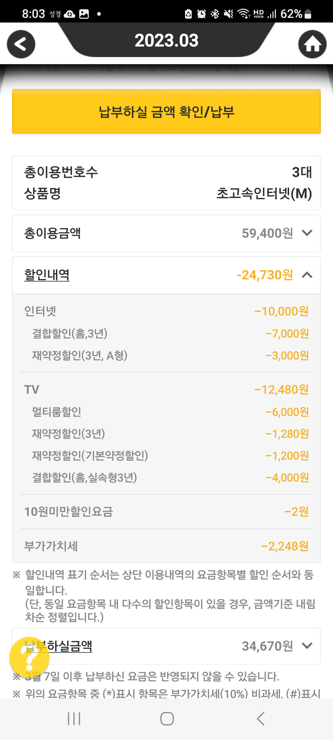 인터넷, TV 월요금을 확인했지만 제가 전산으로 한 번 더 확실하게 봐드리고 싶어서요!!