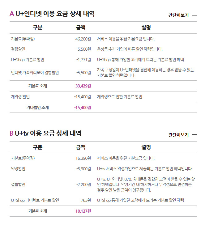 핸드폰은 와이프랑 저 둘다 유플러스 사용중이구요 ㅎ한방에yo 할인 받고 있습니다.