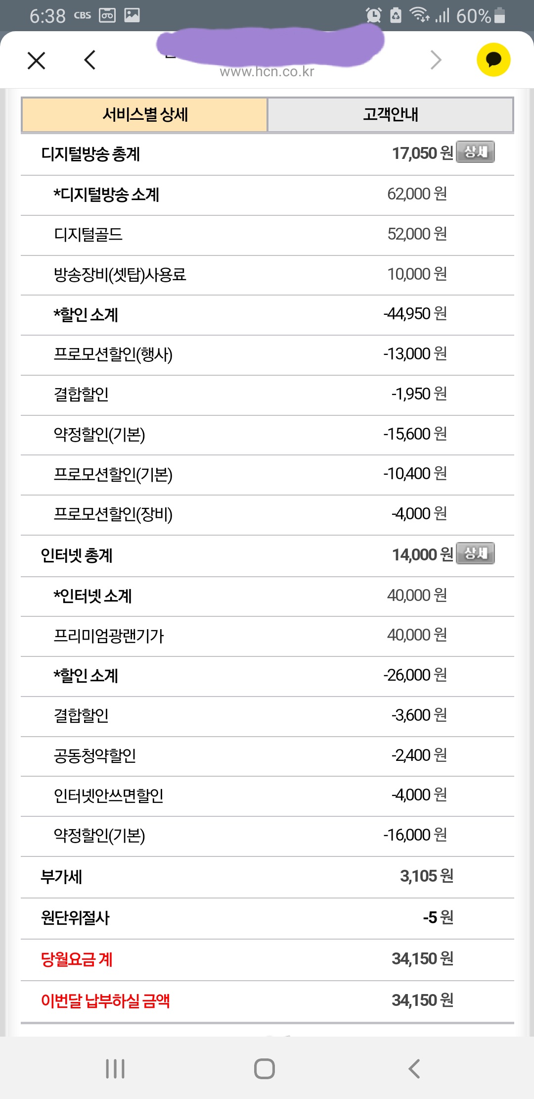 그렇다 한들 HCN회선을 재약정한 것과 금액차이가 많이 나다보니,
