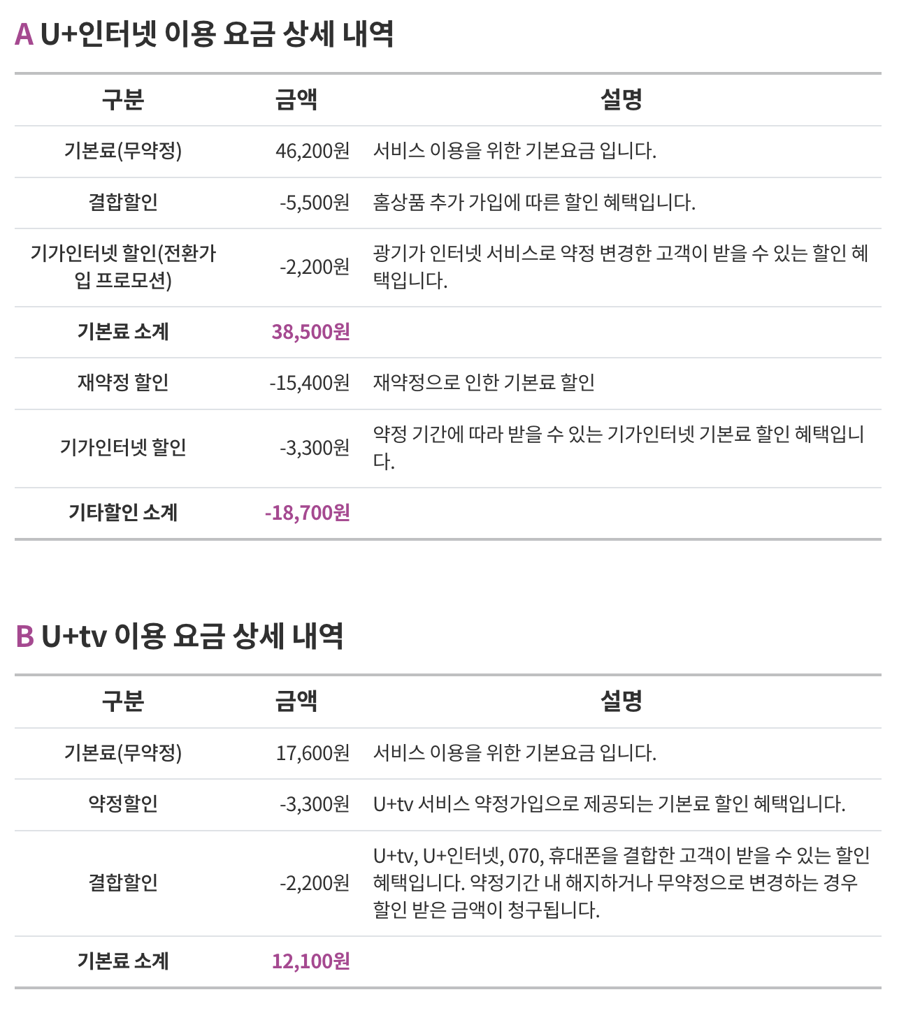 첨부1. 유플러스 인터넷과 티비 요금 내역