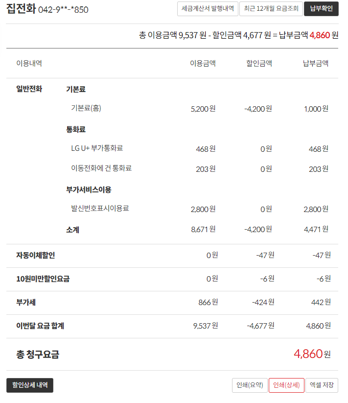 집전화 요금까지 포함해서 말씀하신 거라면?