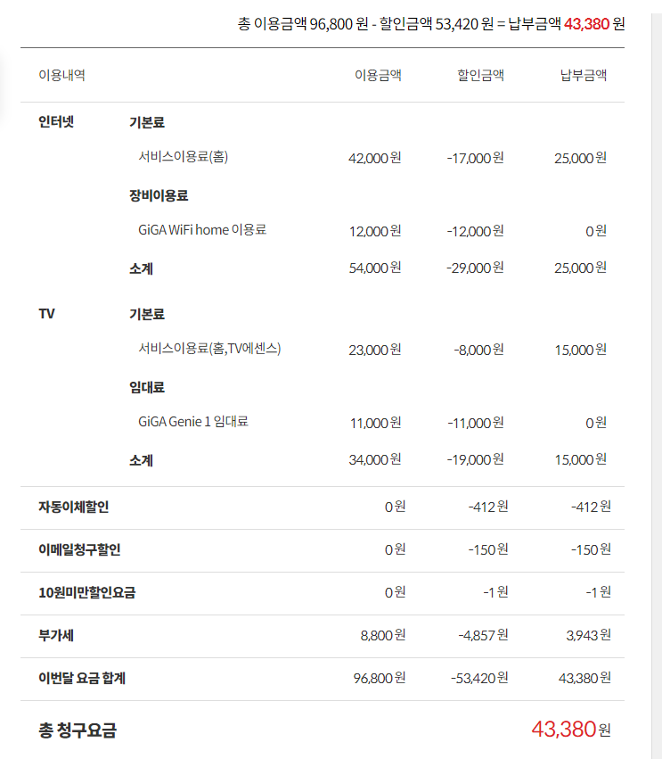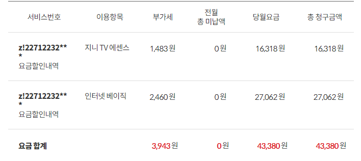 = 43,380원으로 이용 중이시구요~~!!