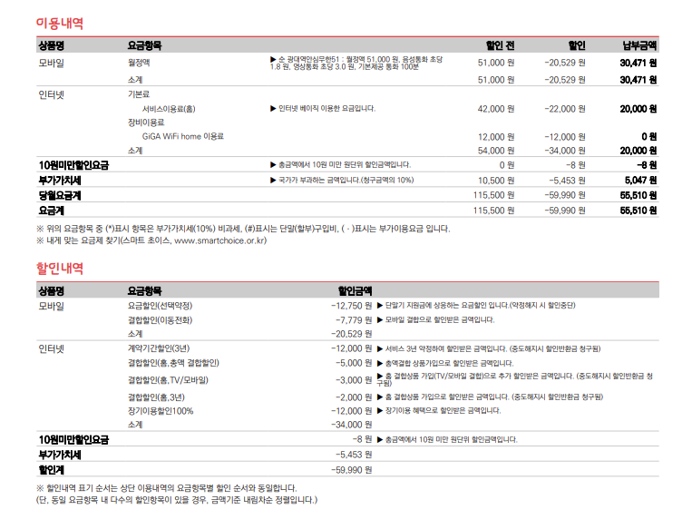 첨부파일은 인터넷+남편폰요금 내역이에요.