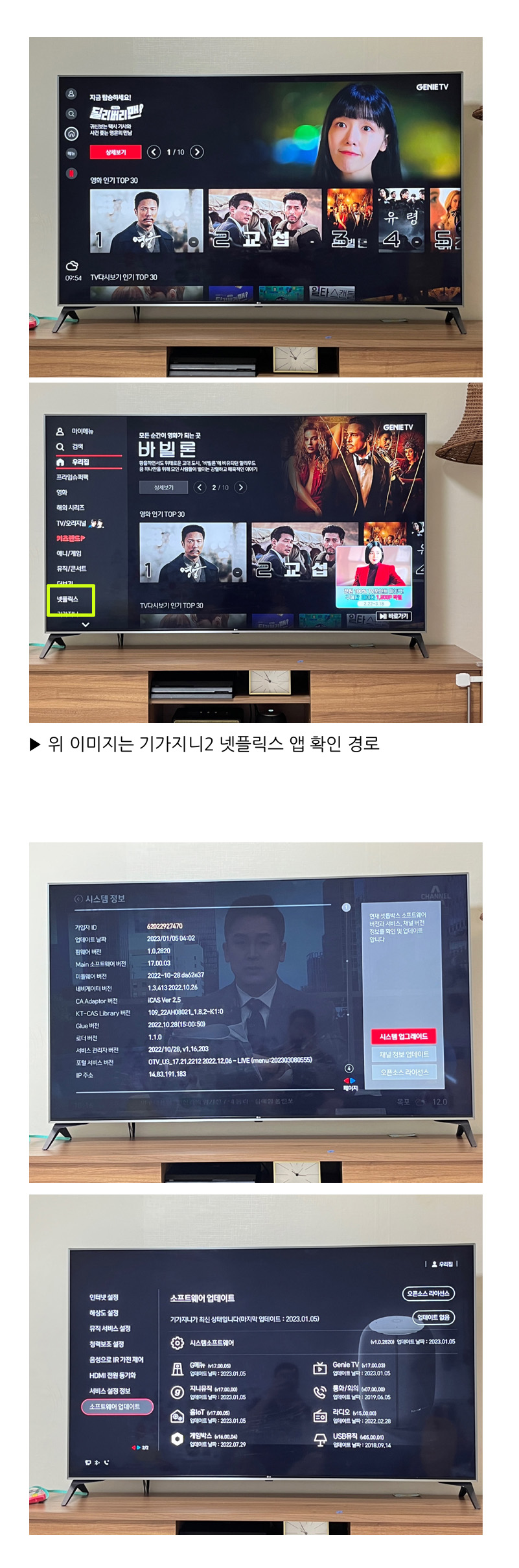 "기가지니2의 마지막 업데이트가 18년 1월로 머물러있고, 넷플릭스도 없다! 강제로 셋톱박스 업데이트를 해줄 수 없겠느냐!"