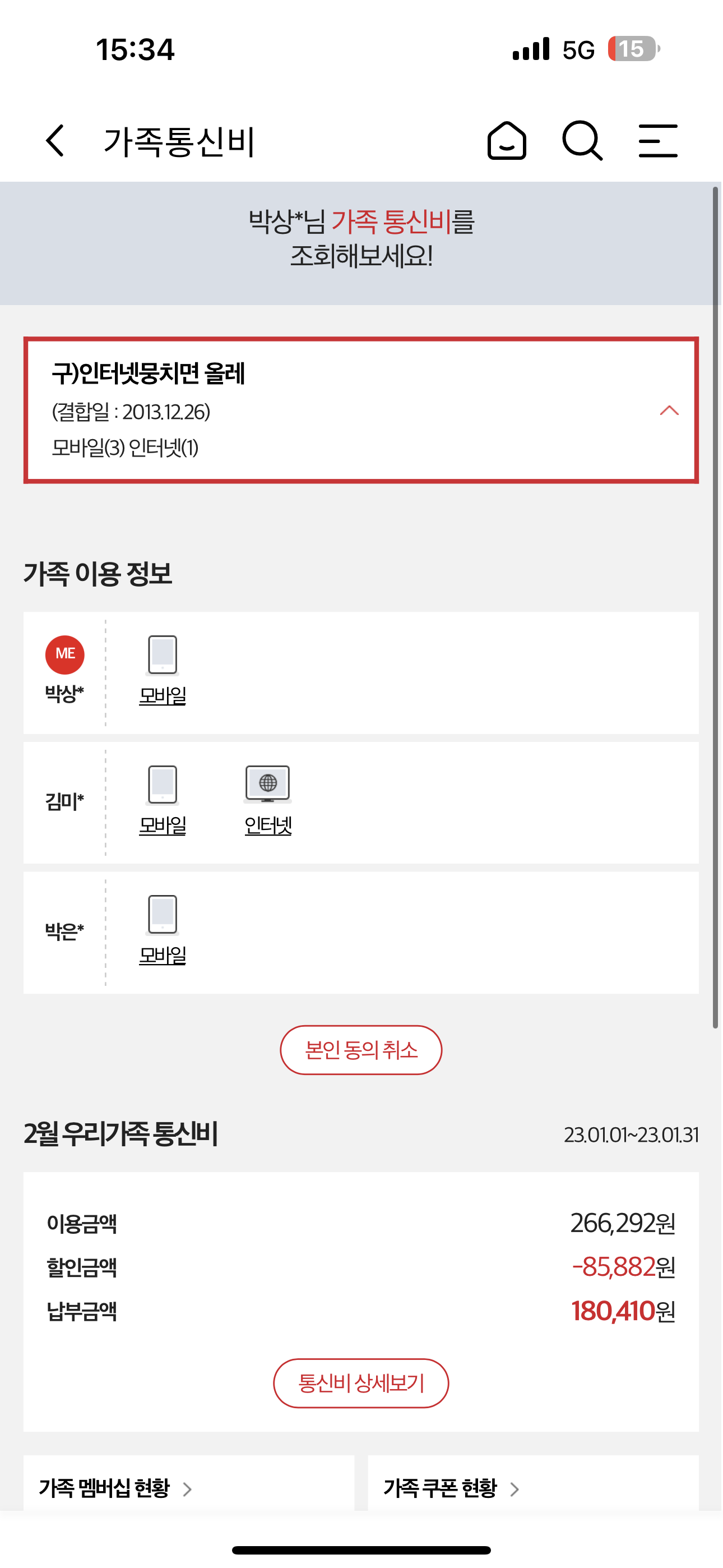 박상현님과 가족(직계)분께서 쓰시는 휴대폰 모두 KT라면