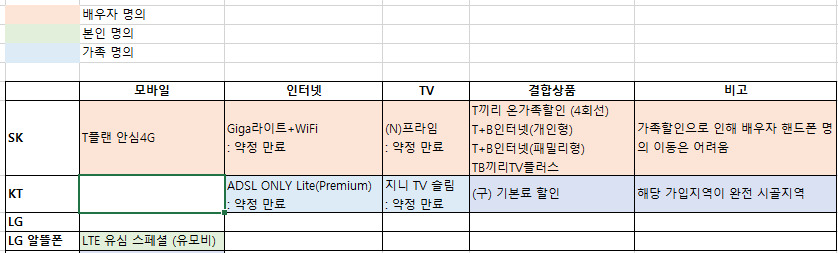 현재 집에서 사용중인 인터넷, TV는 SKB 입니다. (KT의 경우에는 본가에서 사용중인 인터넷, TV로 참고차 포함하였습니다.)