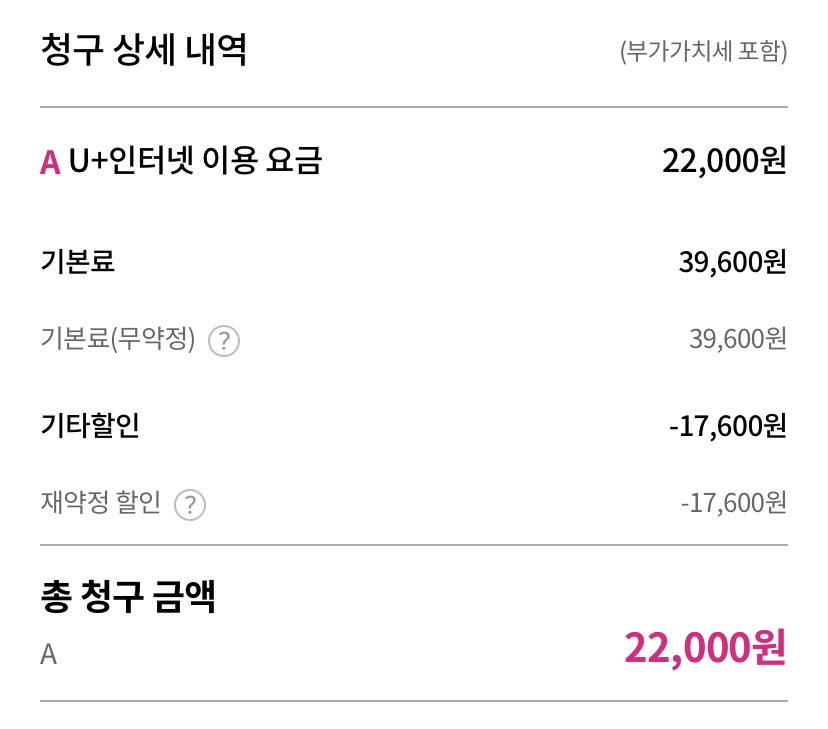 -> 예시 : LG 100메가급 인터넷 + 와이파이 공유기 = 22,000원 납부 중~! 등등..
