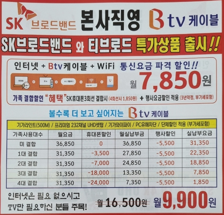 우선 해당 업체가 들어오면 전단지의 정확한 상품/요금을 따져봐야 할 듯 한데,