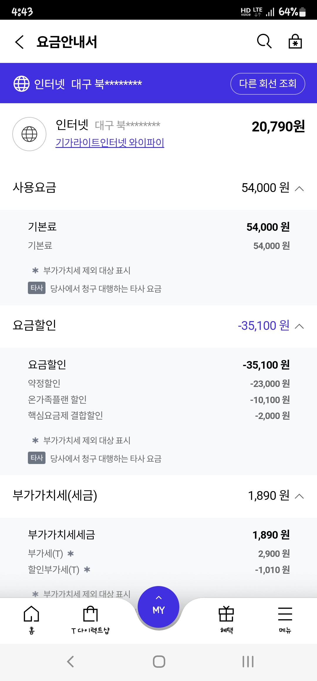 자택의 SK온가족플랜에 추가로 결합해 할인받으실 수 있습니다.