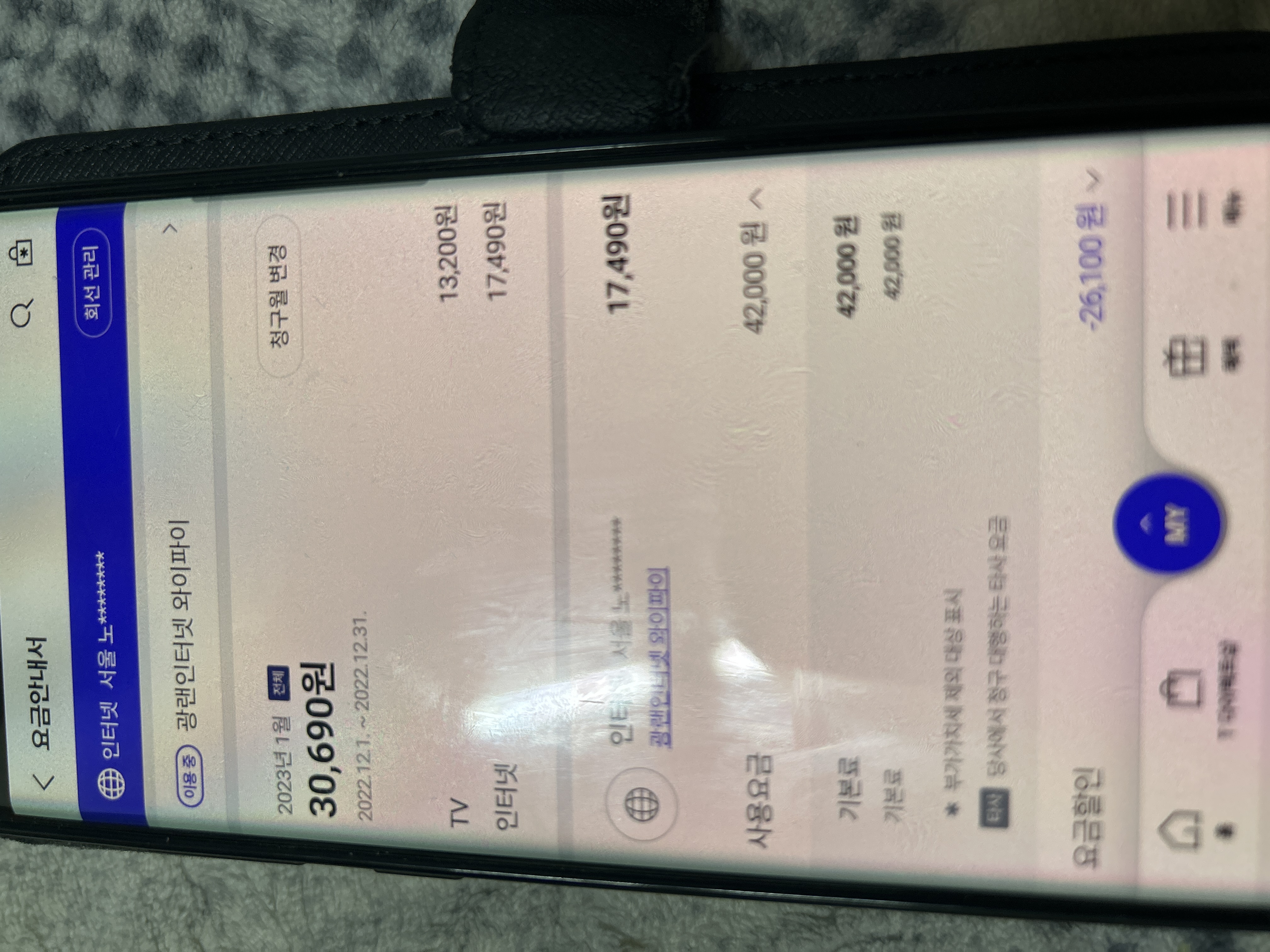청구서상 기본료가 월 42,000원으로 표시됩니다.