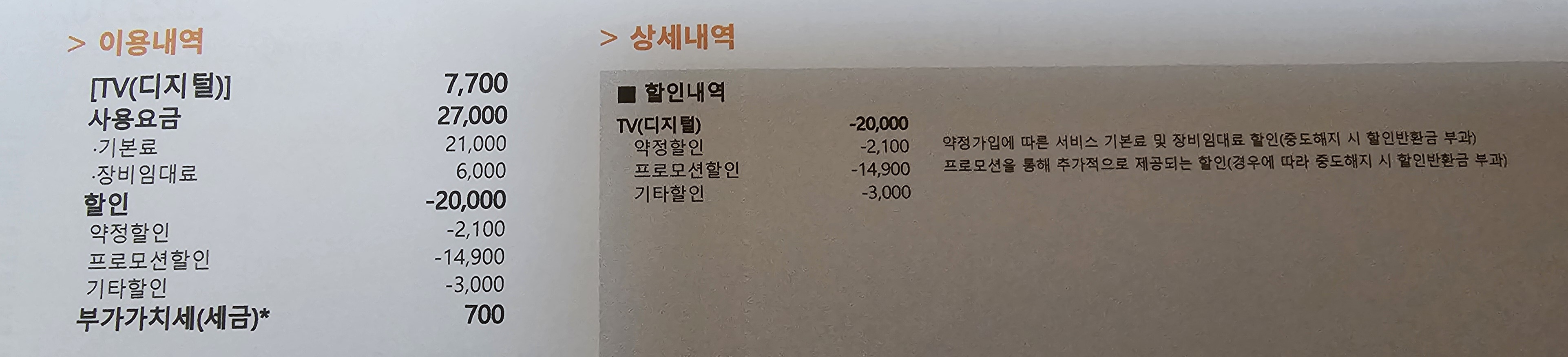 기존 케이블티비 유지 비용 (= 월 7,700원)에 비해서...