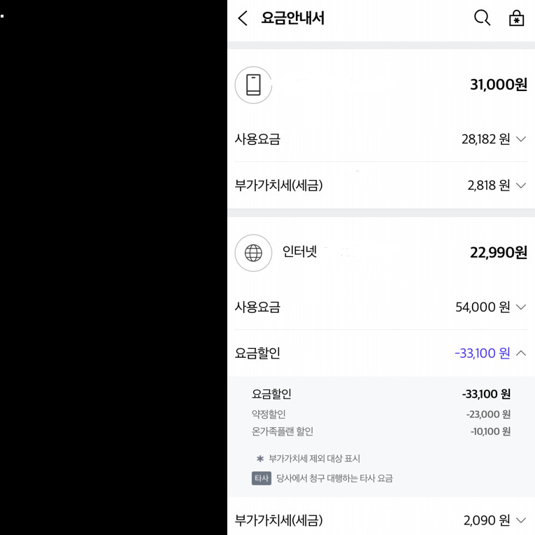 SK는 유무선 결합 시 재약정 혜택이 많이 줄어드는 편인데