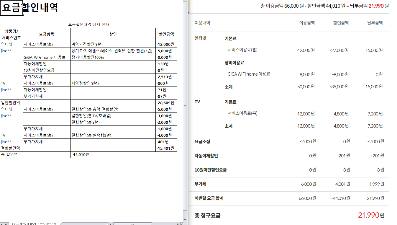 각각 3년씩 시작되어 약정기간 관리하기도 번거롭습니다 😅😅