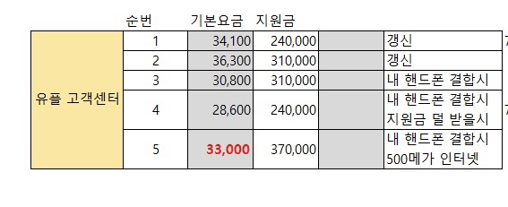 여기까지 요금과 사은품 정리를 마쳤는데요~