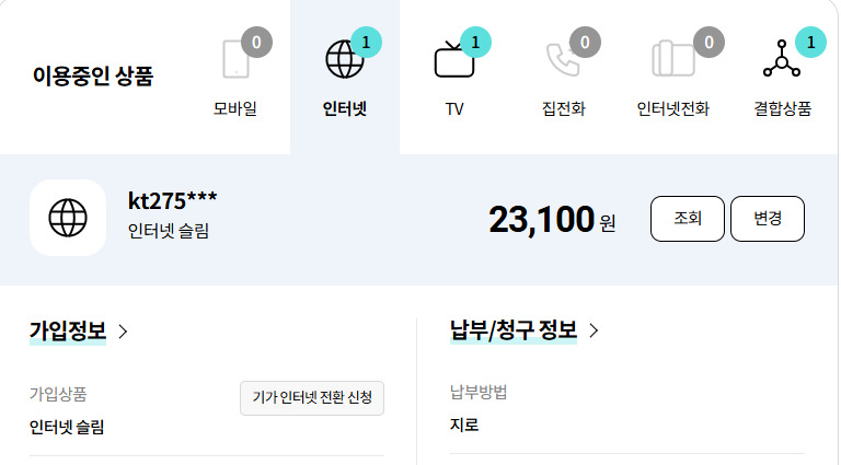 부모님 댁에 제 명의로 kt 인터넷, TV를 이용중입니다.