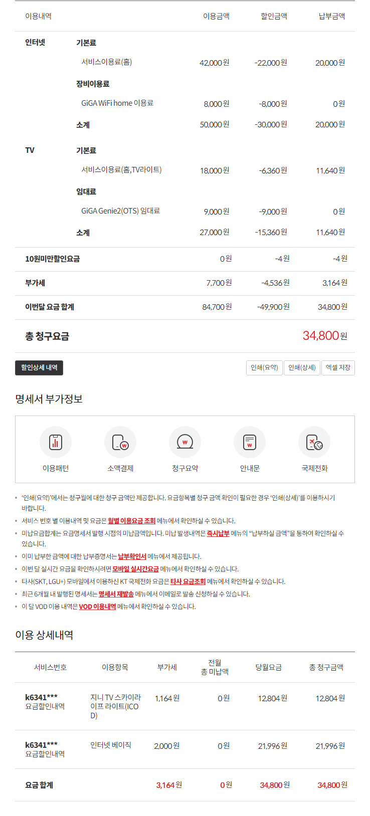 휴대폰 결합할인을 받고 있는지 첨부해주신 이미지로는 확인할 수 없지만