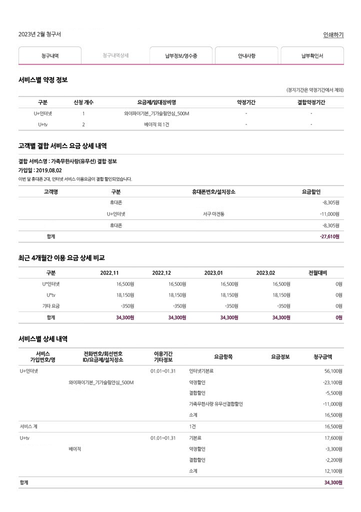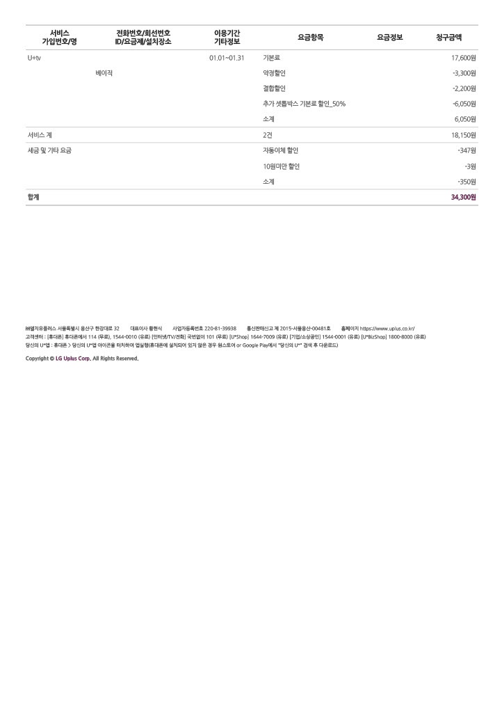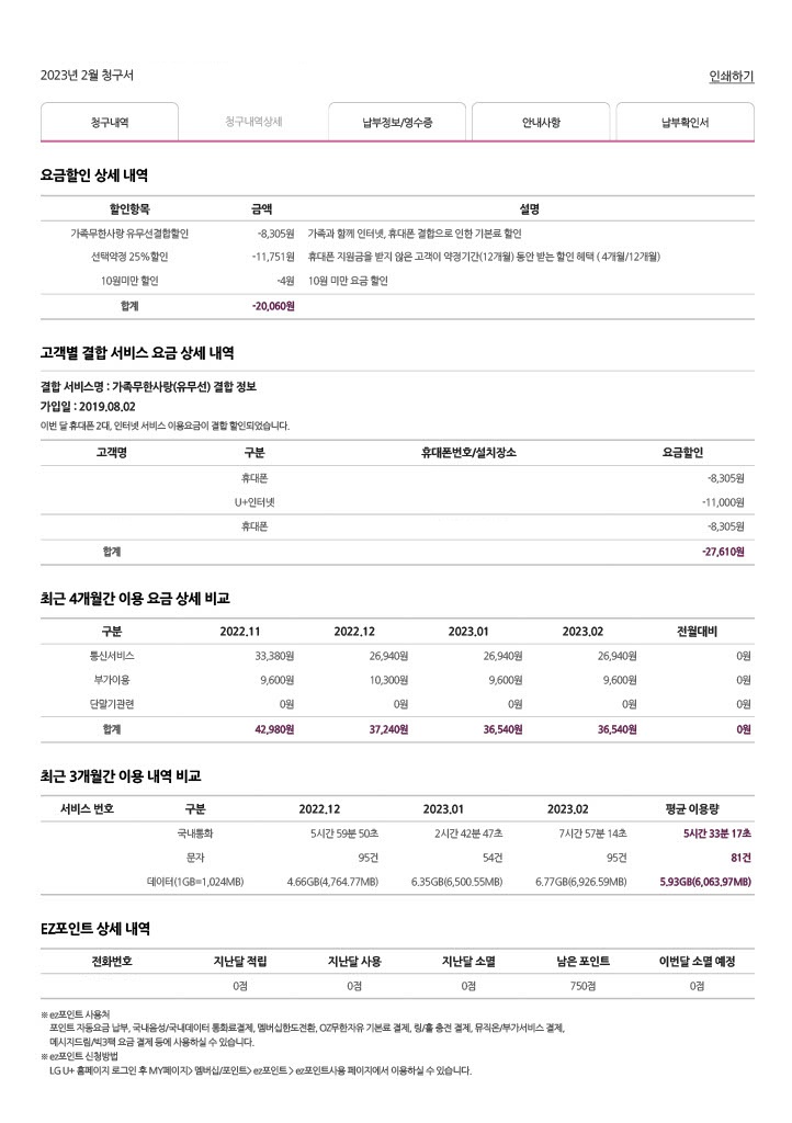 현재 LG U+ 인터넷, TV, 핸드폰을 결합해서 이용 중에 있습니다.