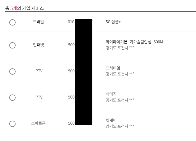휴대폰 총 4회선 중 LG휴대폰 2회선은 KT로 이동이 가능하고