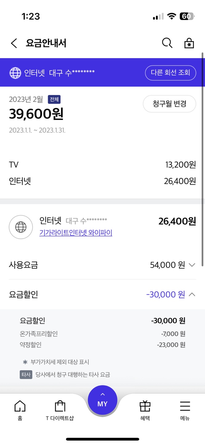 티비,인터넷,와이파이공유기 이렇게 사용중이고요 다합해서 총 39,600원 내고있습니다.
