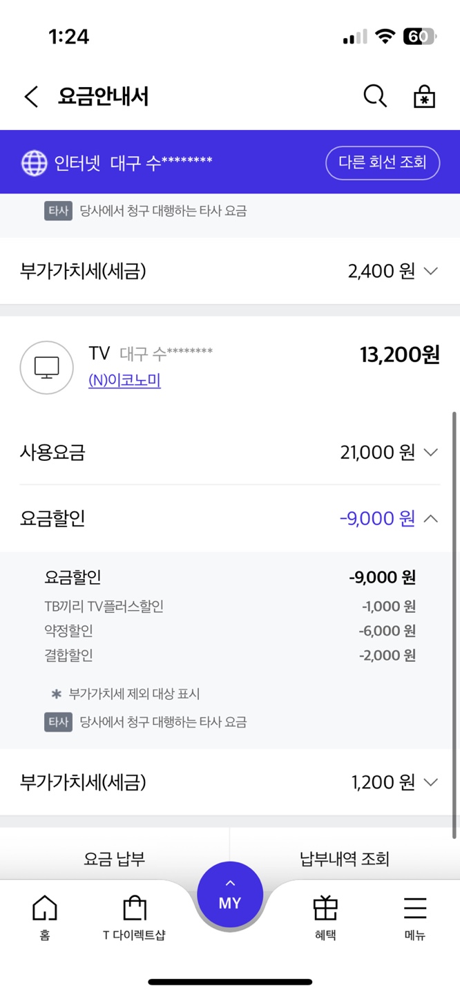 일례로 현재 쓰시는 IPTV요금은 13,200원이 나가고 있는데,