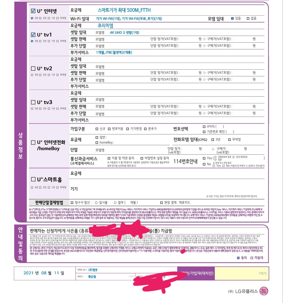 LG 스마트인터넷 500메가급 + 프리미엄 = 구성이었는데요~!