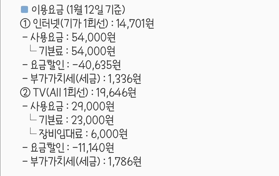 안타깝게도 남겨주신 요금 내역이 너무나 간략하여