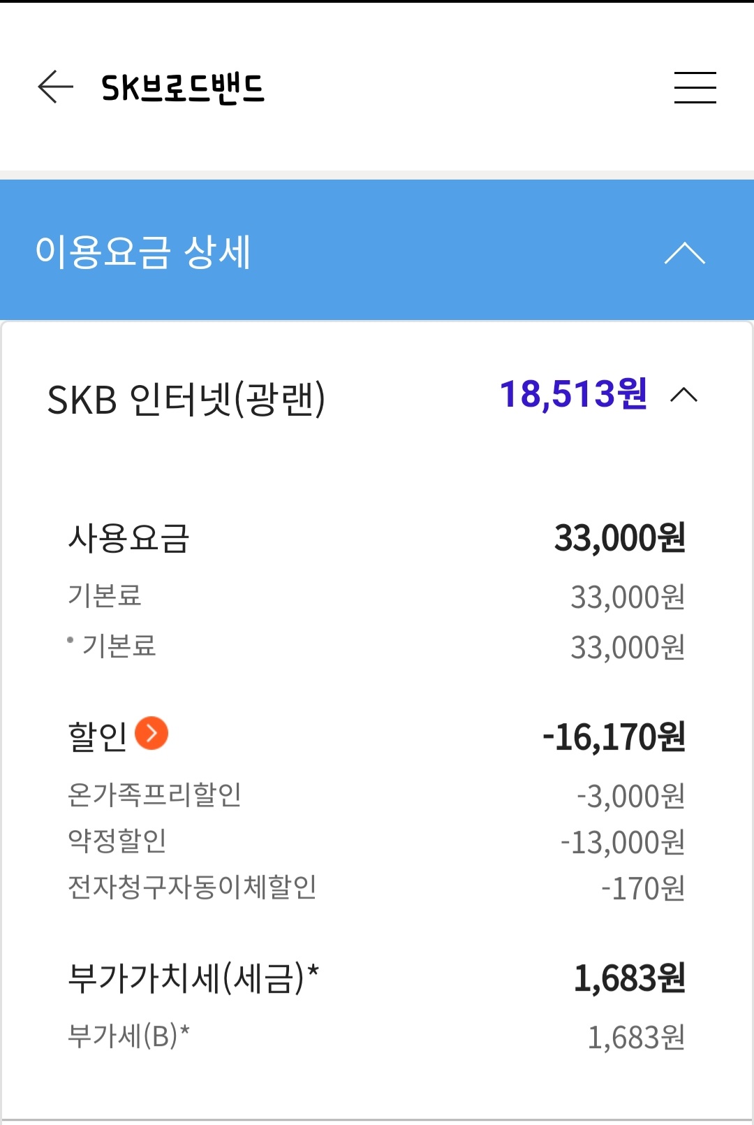 인터넷 요금을 5,500원 할인 받을 수 있지만 그럼에도 불구하고 SK의 할인액이 더 높습니다🤗