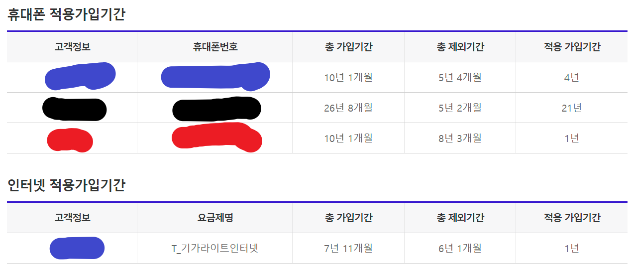 합산해 보면 총 27년으로 (휴대폰 3회선 + 인터넷 1회선)