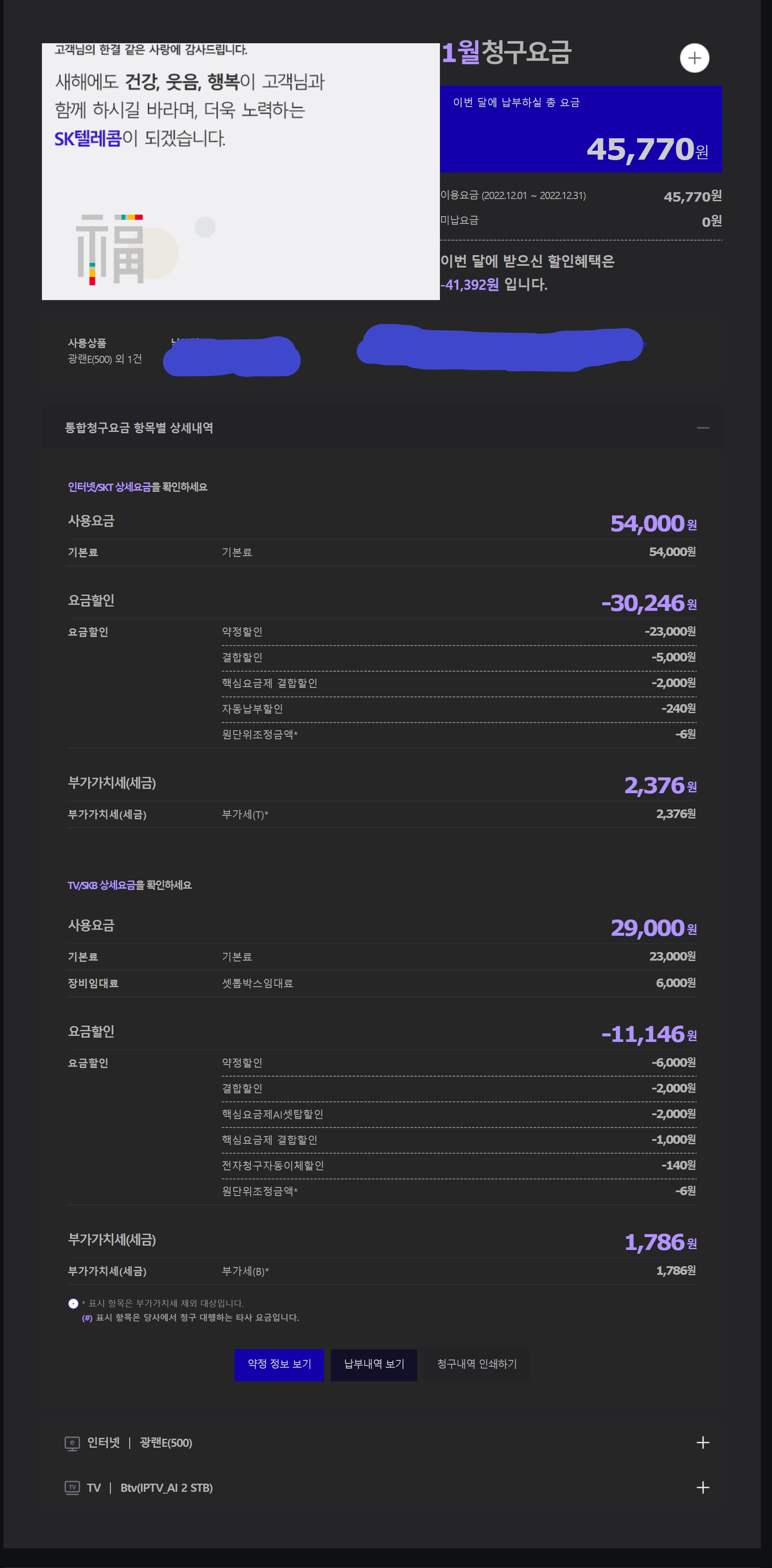할인을 받지 못한 인터넷+TV 명의자는 어머님이기에