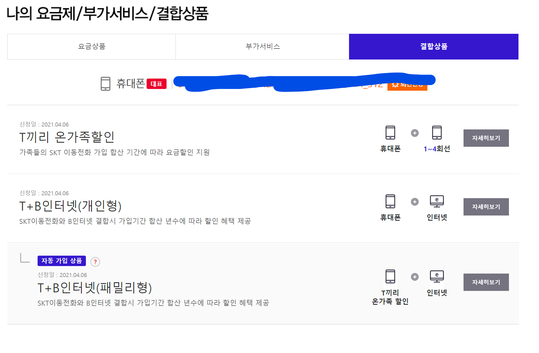 SK휴대폰을 다른 결합상품으로 적용하고 계신 거로 해석했네요!
