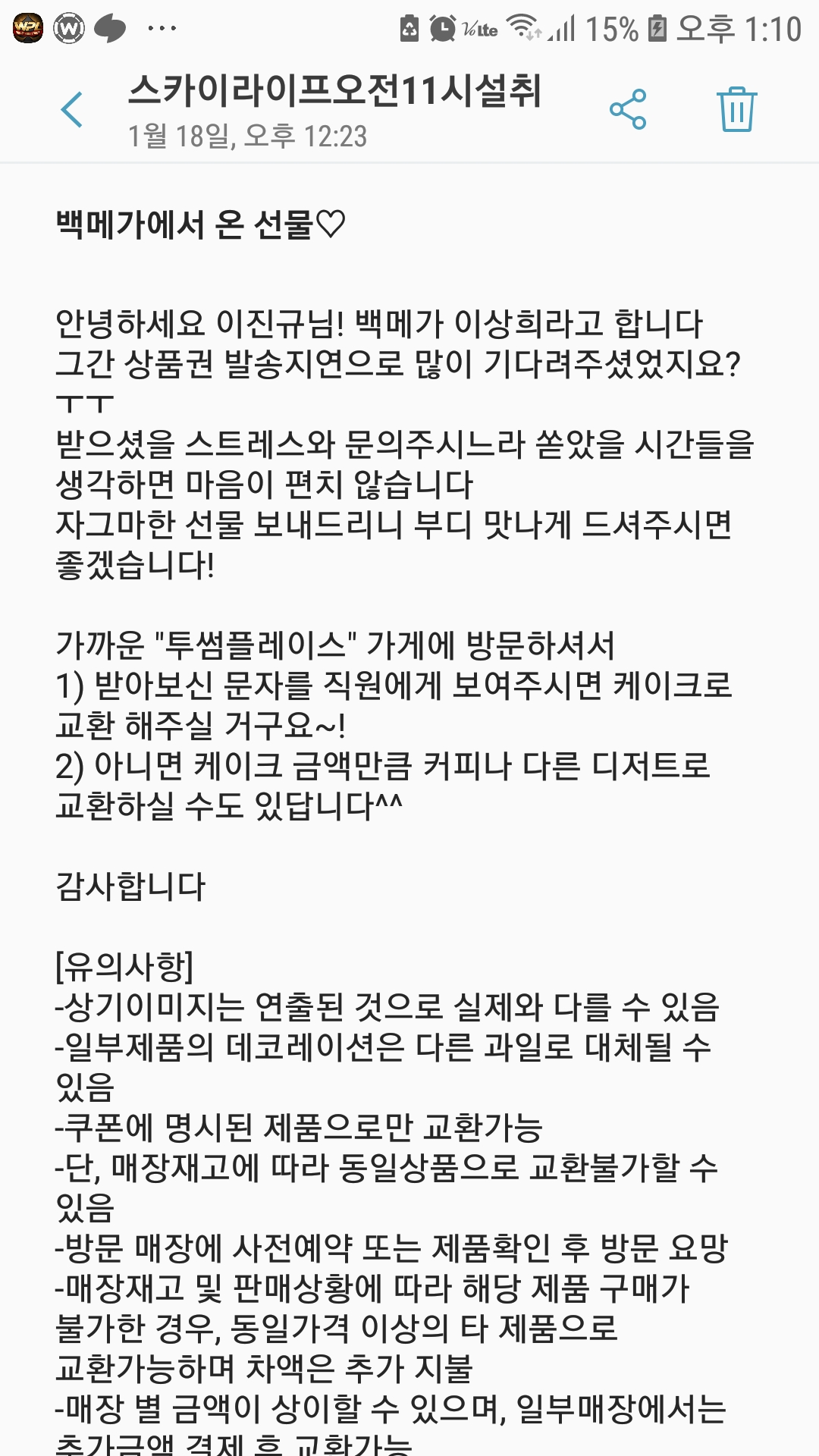 그나저나 케이크 쿠폰 유효기간이 생각보다 짧더라구요!