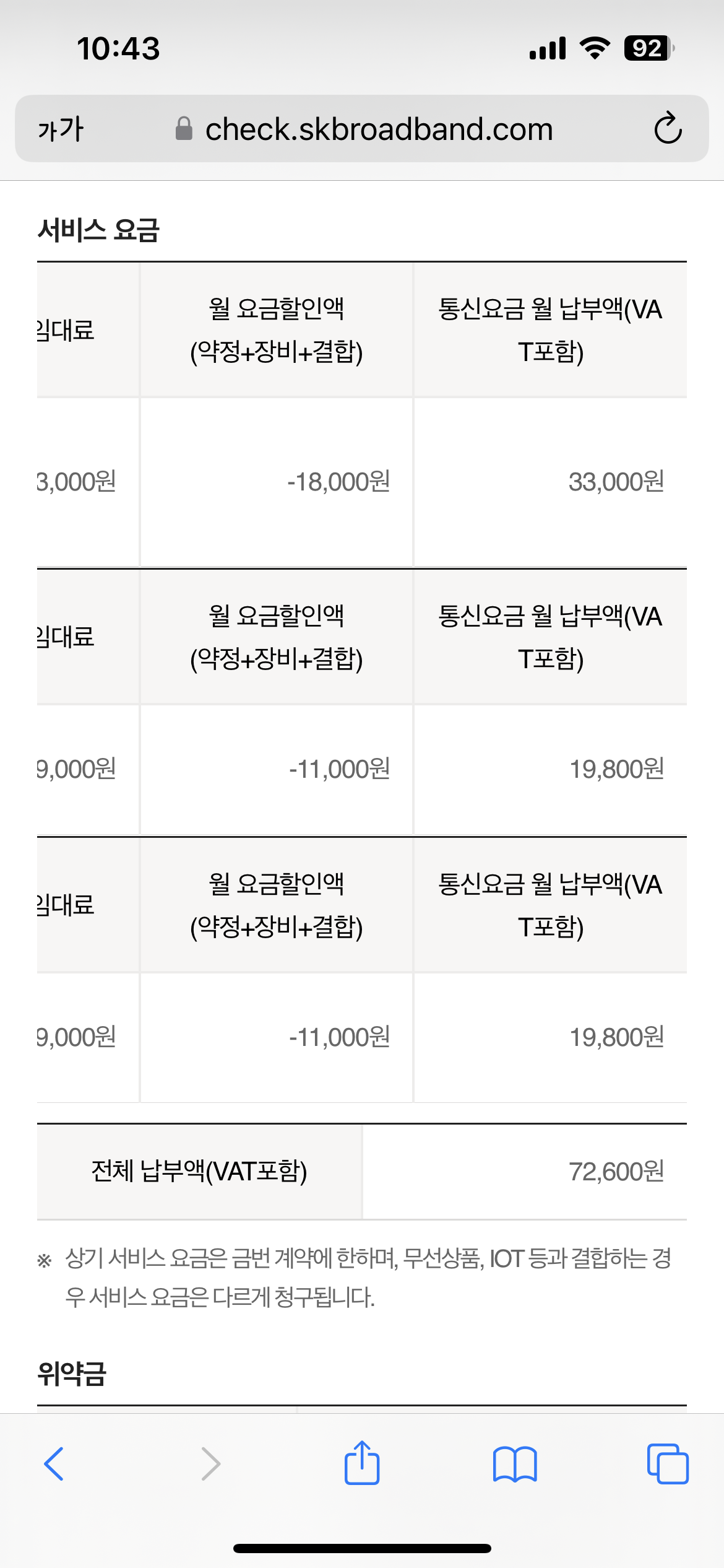 기재되어 있는 요금은 약정 할인만 적용된 것으로