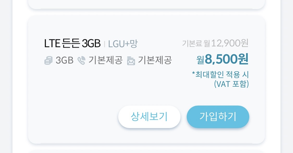 * 리브모바일 LTE든든 3GB = 최저 월 8,500원