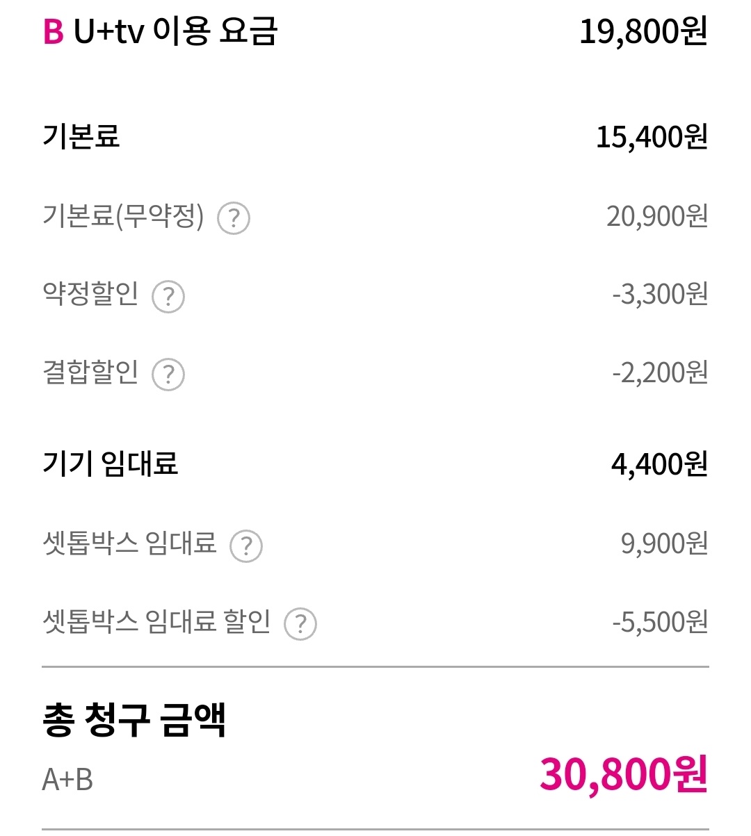 TV요금 19,800원이 → 29,000원으로 상승합니다.