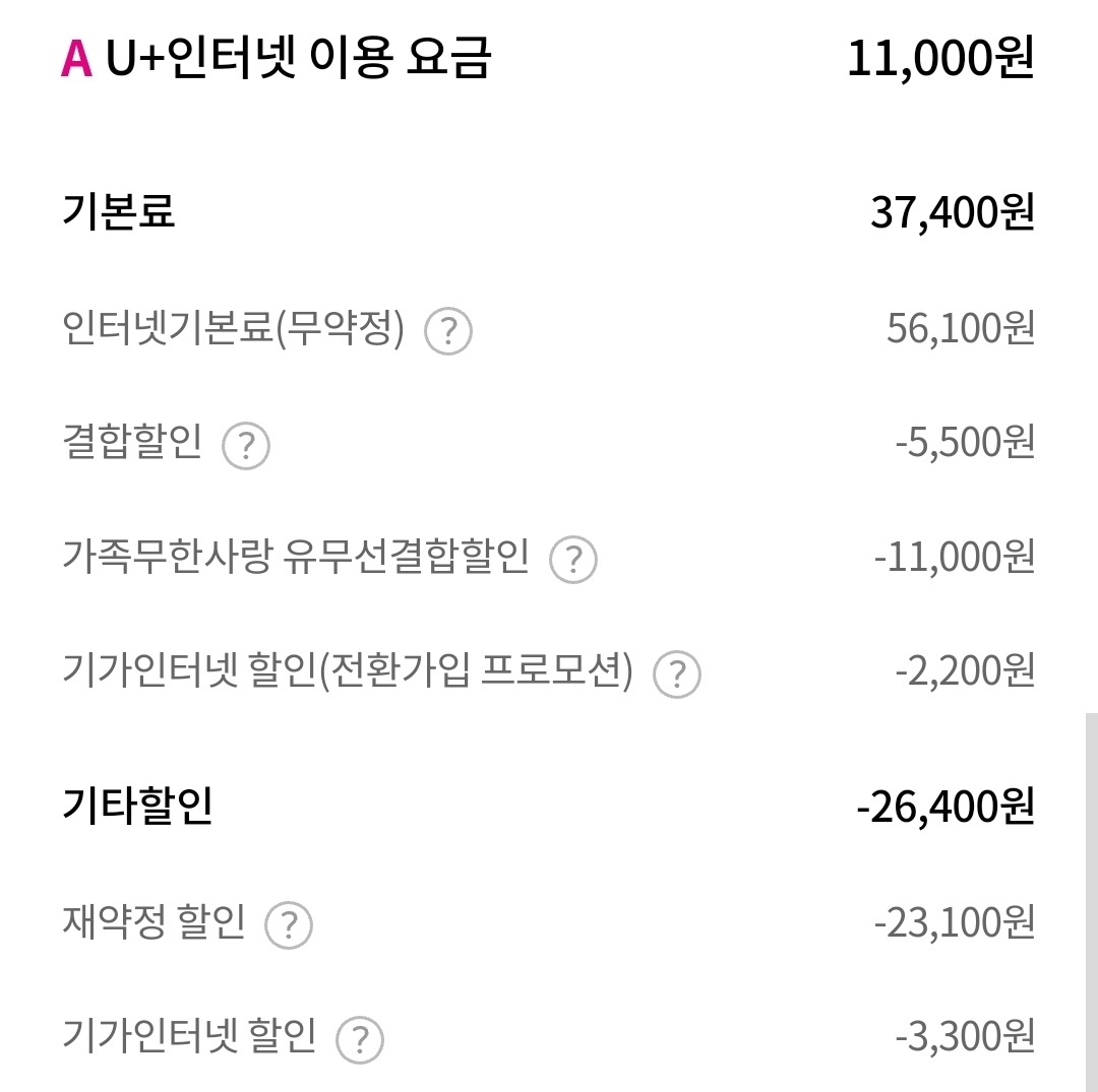 유플고객센터와 통화했을때 약정연장 시 혜택(요금할인및 현금 혜택) 이 없는수준이라