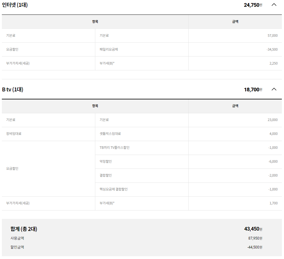 인터넷 : 패밀리 요금제 -34,500