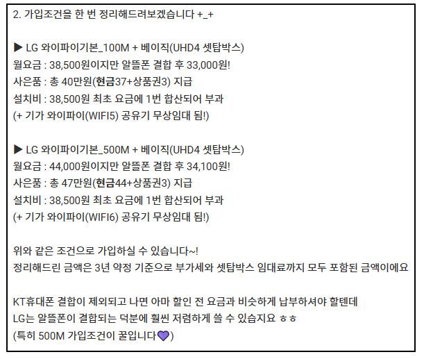 2.아래 글에서 LG유플러스를 추천해주시는데