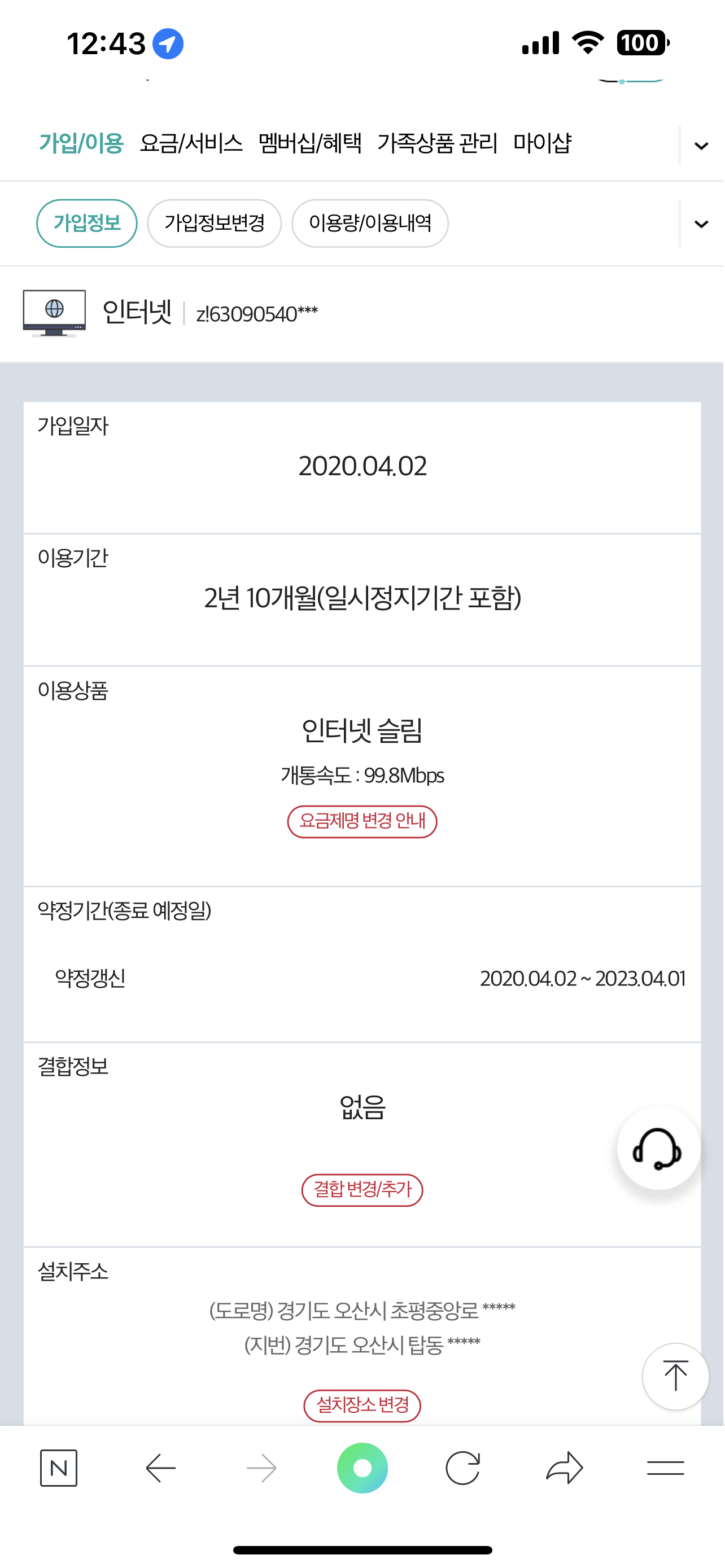 3)본가에는 skt인터넷을 사용중이십니다. 결합상품으로 이용중이신걸로 알고있습니다.