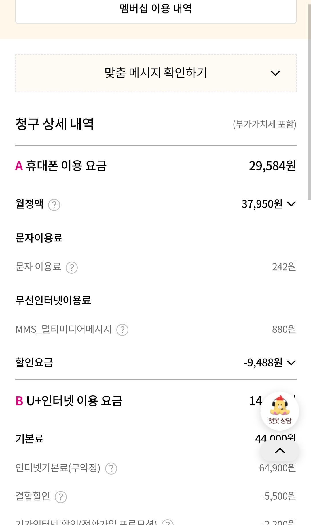 새로 넘어가면 현금44만원 주신다는데 요금이 비싸지네용