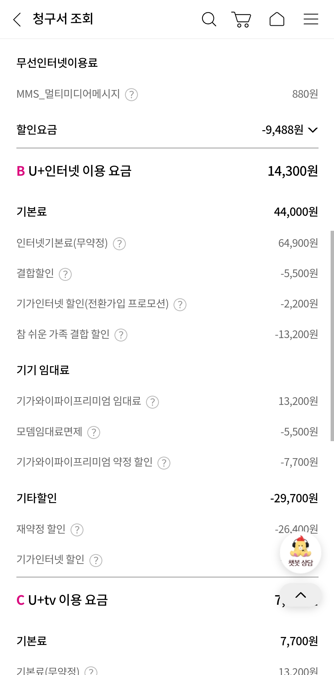LG에서 인터넷과 IPTV, 휴대폰을 묶어서 사용 중이시고