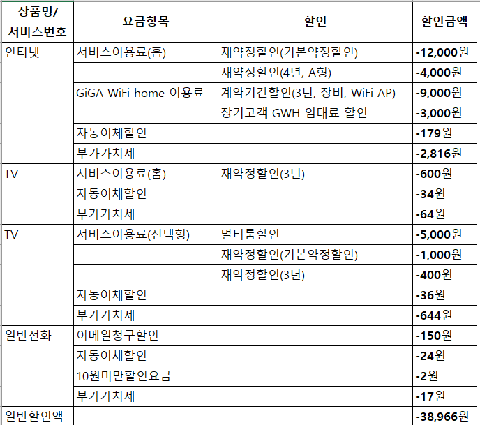이미 요금할인은 최대로 받고 계신 상태인지라,